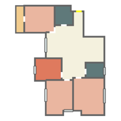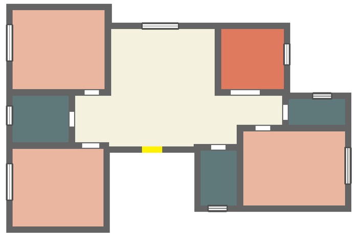На основе заданных внешних границ и положения входной двери, система GFLAN автоматически генерирует функциональную планировку помещения, удовлетворяющую требованиям по смежности помещений, площади и соблюдению заданных границ.