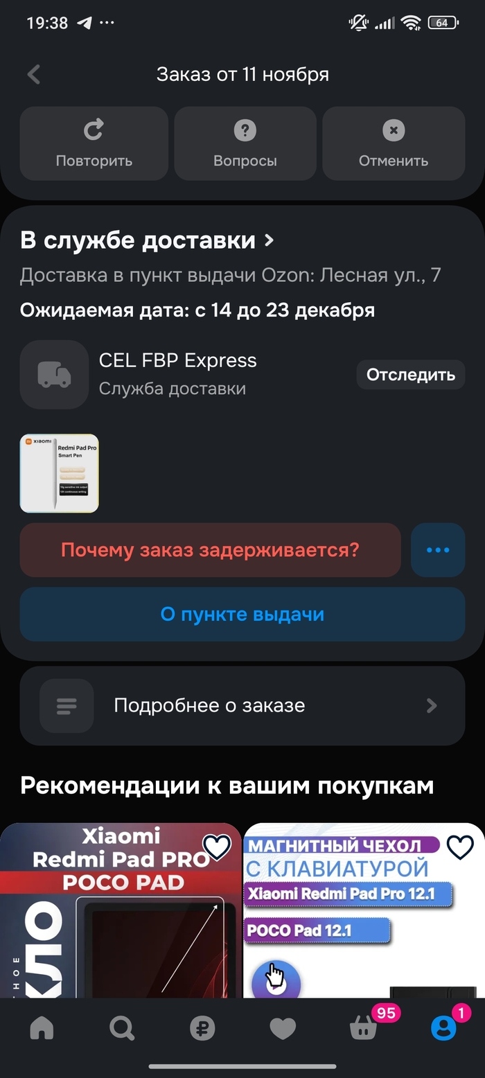Я - бывший сотрудник пвз Озон. Прекрасно понимаю, что у торговой площадки есть большие проблемы с логистикой, но конкретно с лета этого года ситуация ухудшилась раза в три. Сейчас пишу именно как клиент, причем пострадавший). Когда ты являешься сотрудником, поддержка работает очень оперативно, но вот клиентская поддержка тупо отпинывает по всем вопросам. Не переключает на оператора, не реагирует на жалобы, вообще 0. Заказ был от 11.11.25. Товар из-за рубежа. После попадания 20.11.25 в сортировочный центр, он пропал). Предполагаю, что товар утерян, только вот поддержка признавать это не хочет, стыдно, наверное. Ни одного ответа. Ни на письма на почту, ни на жалобы, даже оператор никак не помог с проблемой. Пишу с целью ответа Озон на данную проблему, чтобы понять, что вообще с товаром, отслеживается ли он, не утерян ли он. Если он утерян, я просто дождусь возможности отмены и куплю товар на другом маркетплейсе. Сроки доставки перенесены уже 2 раза. Трек- номер 0105073154-0050-1