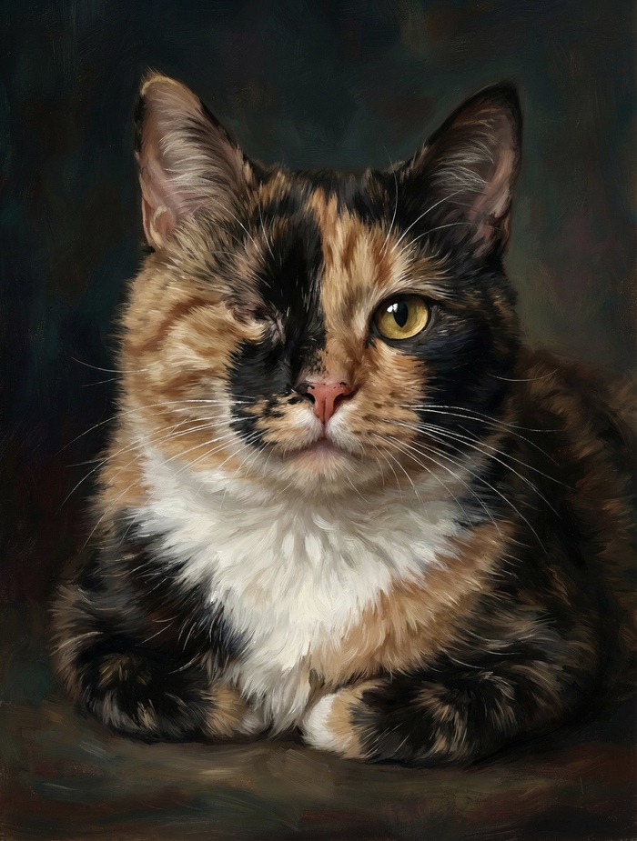 Свет и объём. В моём портрете свет читается мягко и логично, морда и шерсть объёмные. Во втором освещение ровнее — картинка выглядит более плоско.