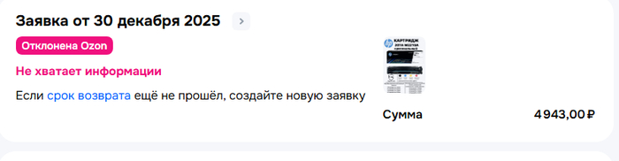 Без сомнения понятно что это не какие не оригинальыне картриджи а восстановленный хлам. Но только не озону, у них на все один ответ: " картриджи не подлежать обязательной сертифакации" Даже если ты выбираешь причину возврата б/у их аргумент опять " картриджи не подлежать обязательной сертифакации" Слушайте, а давайте лучше вообще будете продавать пустые коробки, раз у вас есть этот железный аргумент, к тому же ваш этот хлам внутри никому не нужен. А Теперь пробежимся по хронологии этого ада.