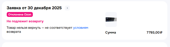 @Ozon, возврат одобреный вашим юр. отделом еще в декабре, повторно оформлен заявка №72314333-R35 в случаи очередного не правомерного отказа, ответ будет выложен сюда.