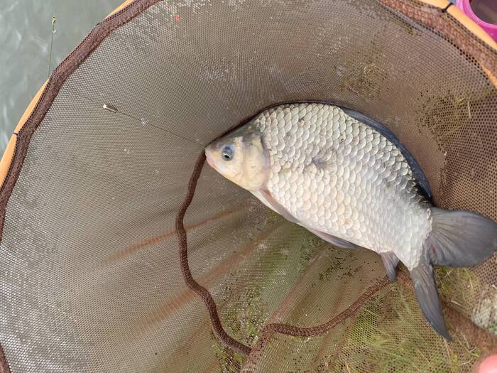 Следом — ещё один карп на полтора. Карасевый крючок при этом гнётся, как мораль в комедийном фильме.