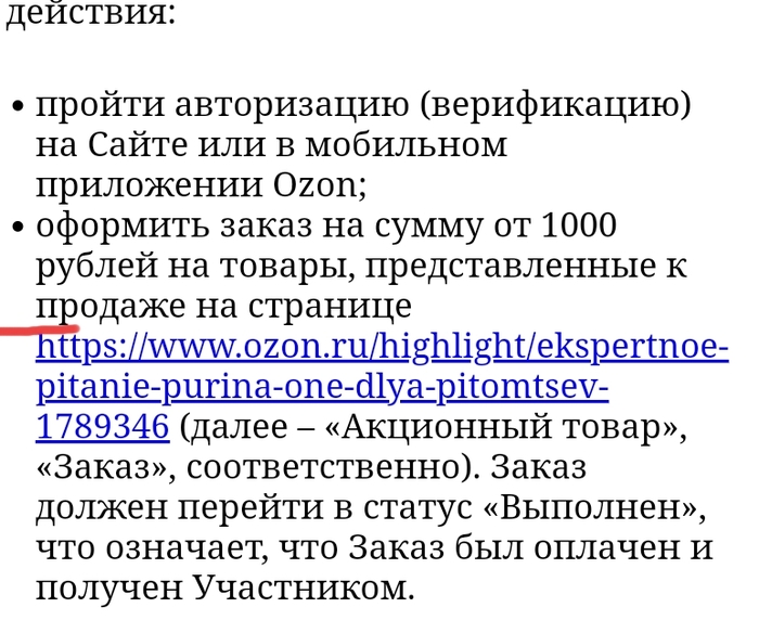 Вот что есть у меня + ссыль https://www.ozon.ru/highlight/ekspertnoe-pitanie-purina-one-..., что является подтверждением того, что товар участвует в розыгрыше.