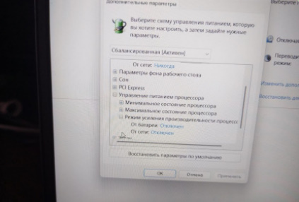 И ребутим windows. Потом заходим в режим энерго ЦП и нам открывается скрытый пункт турбо буст! КАк видно на фото он называется )РЕЖИМ усиления производительности ЦП) Отключаем его как на фото! Понятное дело хорошо бы было отрубить его навсегда через БИОС, но фирмы позаботились о залочке и не возможности его отключить.