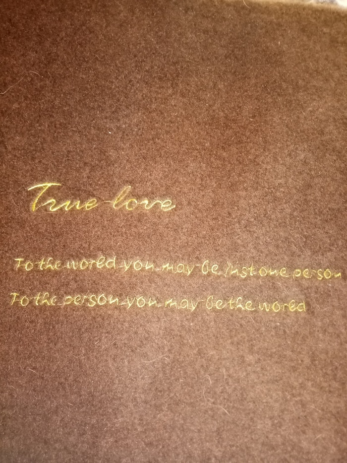 Помогите перевести надпись на коврике, кот две минуты через порог разглядывал, зашёл, посидел. Потом на стул спать со взглядом волчицы. Вроде того, убирай его, или вместе с ним убирайся, а я немецкий учил, может, там неприятное для него. Вроде бы про любовь. Хелп.
