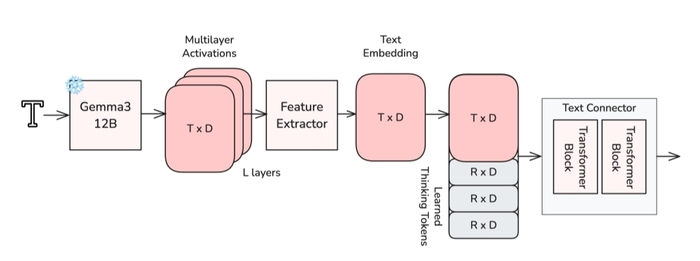 Чтобы реализовать мультиязычность, используют мощный языковой энкодер (Gemma 3), что улучшает понимание сложных запросов и точность синтеза речи. Для контроля используется механизм Modality-CFG, позволяющий независимо настраивать влияние текста и другой модальности на результат.
