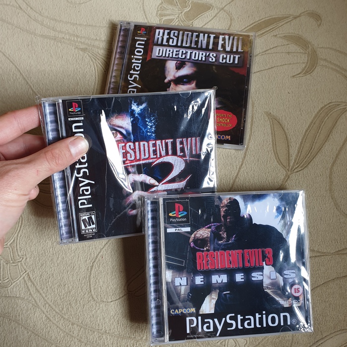 У нас в городе был магазин Марио. И мы шпаной 7-12 лет стояли у прилавка и долго смотрели как продавцы играют в какую-то страшную игру, где долго открываются двери. У меня SP1 появилась летом 2000г. Я успешно сдал экзамены в 9ом классе и родители купили мне долгожданную приставку. Правда пришлось продать Сегу, чтобы доложить деньги и "помочь" родителям. Кстати, то что не сохранилась оригинальная Сега я очень жалею. Помню, как я любил Medal of Honor, Tomorrow Never Dies и конечно же Resident Evil. Сперва я играл в 3юю часть и она стала моей любимой частью. Потом в 1ую, где я влюбился в особняк и последней частью была 2. Как же мне нравилось бродить по длинными коридорам и улицам в поисках ответов на загадки... Через 2 года в 2002 я поступал в университет и уже нужен был ПК, поэтому по старой схеме мы продали Соньку и купили мне Pentium III 733mHz, для учёбы и заодно играть.... Прошло много лет и меня начало ломать по 90ым. Я нашёл на авито первую Соньку в идеальном состоянии. Друзья в Москве купили и отправили мне посылкой на Камчатку. А недавно я узнал, что на авито есть чуваки, которые делают оригинальные пиратки из нашего детства)))) качественный принт на самом диске, принт на коробке, все в плёночке и при желании можно даже заказать игру на черном диске (как у оригинальных) в самом любимом переводе какой захочешь. И вот наконец неделю назад я встретился с любимым набором игр, которые не видел 22 года 😭