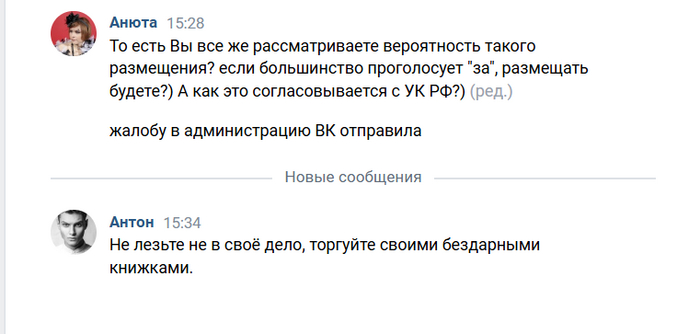 Вопрос к знающим людям: как можно остановить этот поток говна законными способами, помимо обращения в поддержку в ВК? Там было просто общение с ботом, которое ни к чему не привело. Левый отзыв так и висит и портит репутацию.