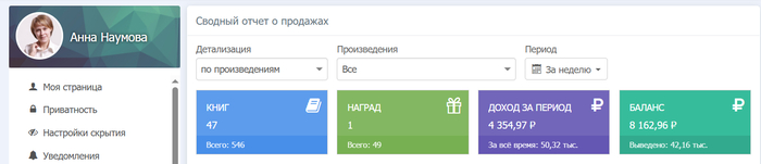 К настоящему времени продано всего 546 экземпляров моих книг. Выводить заработанные средства с АТ просто: нужно не чаще одного раза в месяц направить письмо руководству портала. Сумму указывать не нужно - после одобрения заявки выводятся все заработанные средства и, как правило, они поступают на счет в течение одного-двух дней. Я зарегистрирована в качестве самозанятой, получаю деньги на счет, сразу же формирую чек, указываю, что это доход за написание книг и исправно плачу налоги. Все честно!