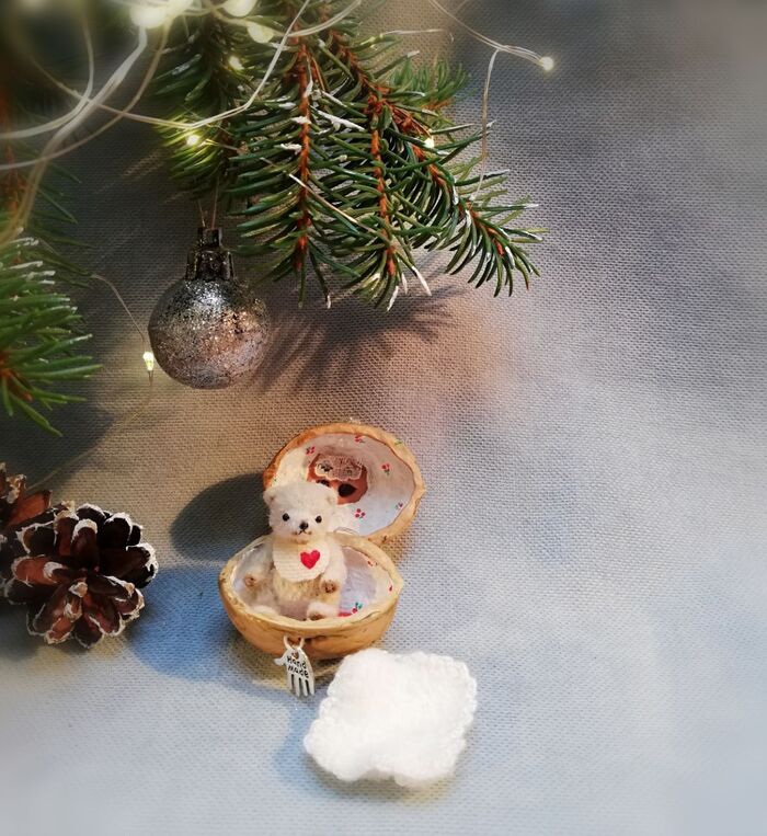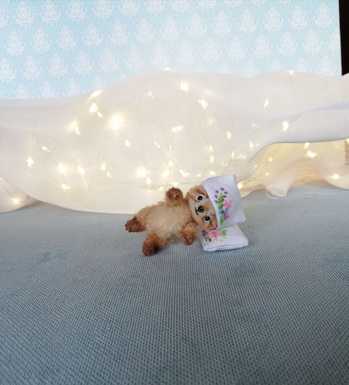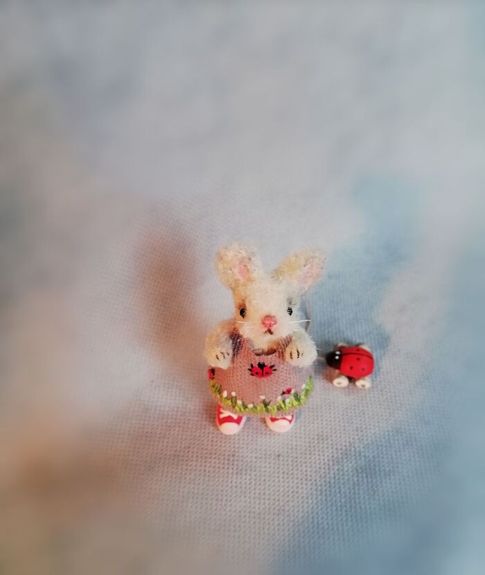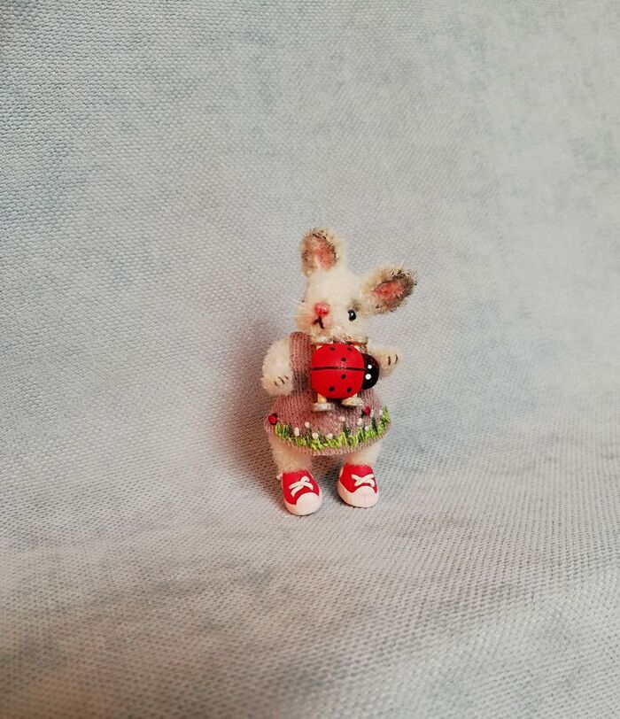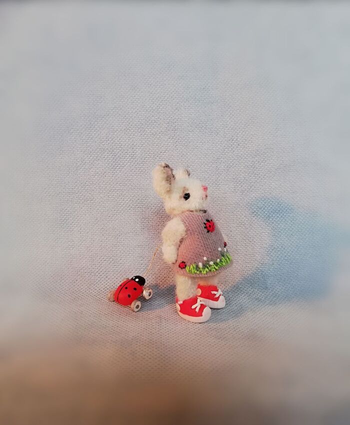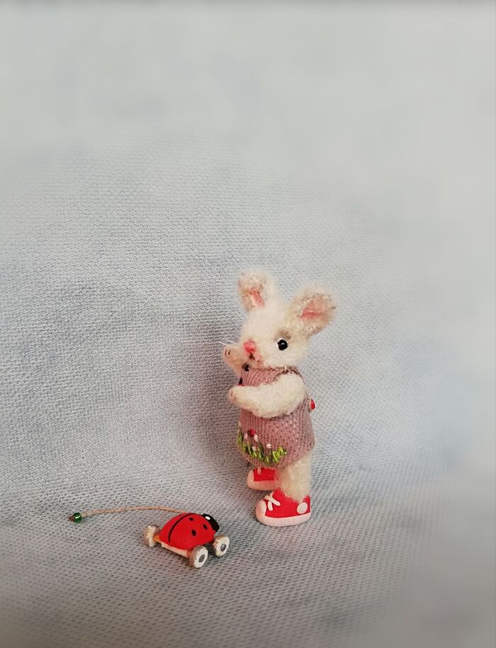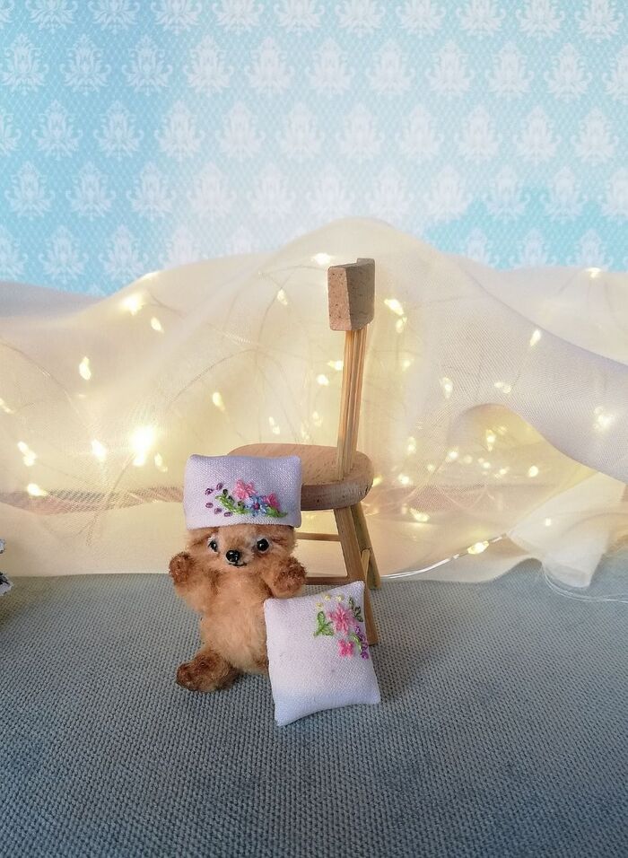 Я делаю милые миниатюрные игрушки. Несмотря на свой размер, они подвижные: иногда на проволочном каркасе, иногда на шплинтах или на нитяном креплении. Вяжутся из пушистой пряжи, потом стрижка и тонирование - всё по-взрослому, как у больших игрушек).