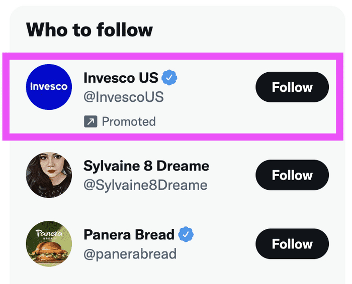 Продвигаемые аккаунты (также известные как реклама подписчиков) - это аккаунты Twitter, за продвижение которых компании и организации платят пользователям в определенные даты в определенных странах. Продвигаемые аккаунты отображаются в том же формате, что и любой другой аккаунт Twitter, и их можно продвигать людям, которые еще не подписались на продвигаемый аккаунт. Продвигаемые аккаунты должны соответствовать правилам Twitter, а продвигаемые твиты из продвигаемых аккаунтов должны соответствовать условиям предоставления услуг Twitter Ads. Продвигаемые аккаунты помечаются как “Продвигаемые”, когда они появляются в расписании на Twitter.com , Twitter для iPhone и Twitter для Android. Продвигаемые аккаунты также появляются на некоторых сайтах-партнерах. Акции для продвигаемых аккаунтов проводятся отдельно от акций для продвигаемых твитов.