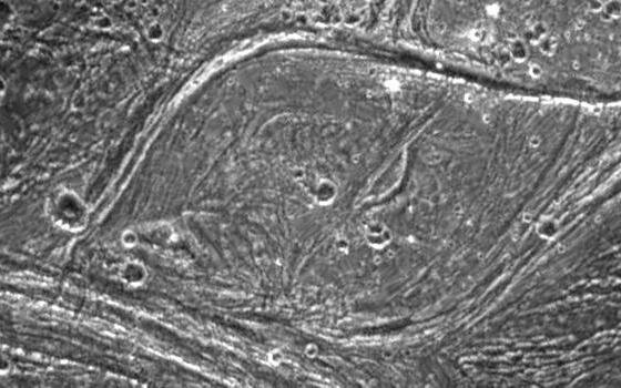 Это говорит либо об относительной молодости спутника, либо об активном криовулканизме, благодаря которому поверхность постоянно обновляется.