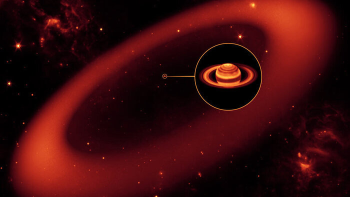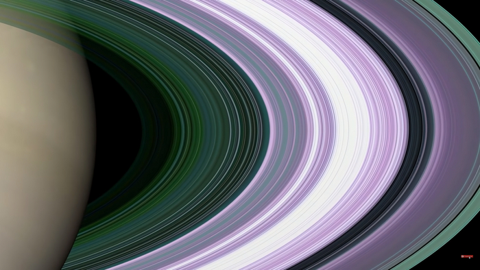 У Сатурна внушительная система спутников: она насчитывает десятки лун, разбросанных на огромном просторе от внутренних колец планеты до 13 миллионов километров, где вращается гигантское кольцо Фебы.