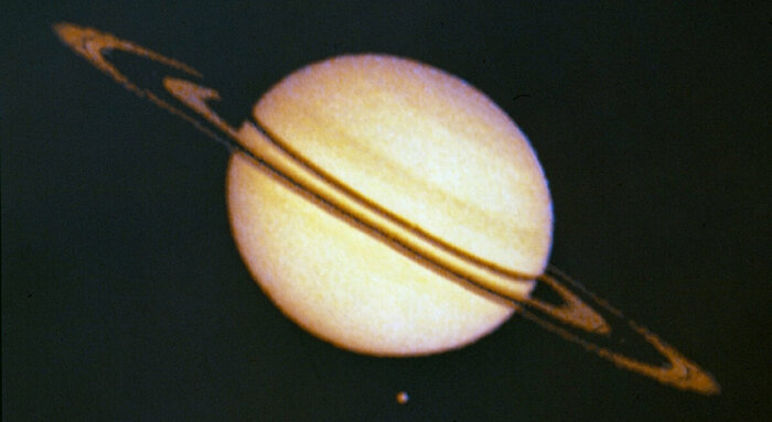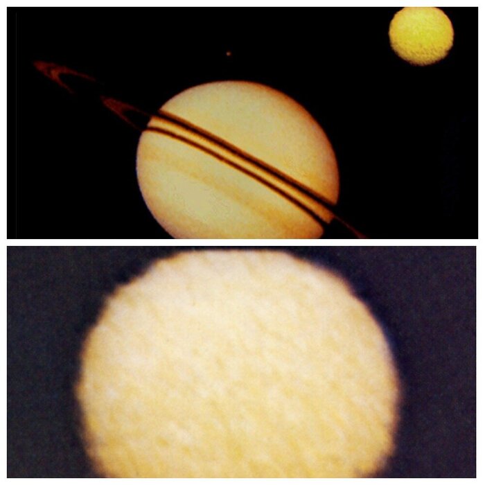 Оказавшись разве что на Фебе, мы могли бы увидеть знаменитые кольца в ширину, но из-за удаленности этого спутника – размер планеты с кольцами в его небе едва ли будет превышать размер нашей Луны на земном небосводе.