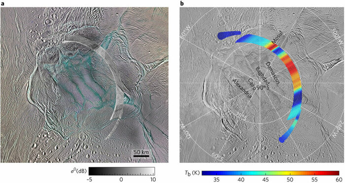 Насколько холодный этот океан и может ли там существовать жизнь? В 2017 году ученые проанализировали снимки юного полюса, сделанные «Кассини», и выяснили, что на глубине всего в несколько метров от поверхности температура на целых 20 градусов выше: