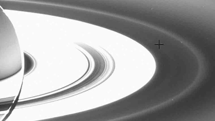 Он располагается в пределах щели Энке в кольцах Сатурна,