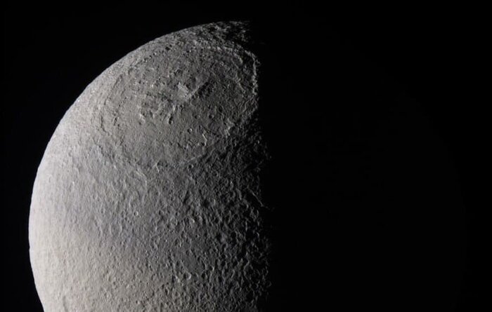 Кратер Одиссей на Тефии, фото с сайта NASA.