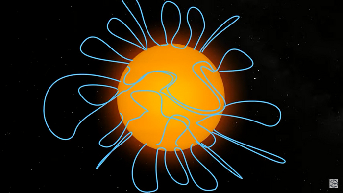 Солнце вращается неравномерно: вблизи экватора вращение быстрее, чем вблизи полюсов. Это искривляет линии магнитного поля, они скручиваются в жгуты и эти жгуты всплывают из глубин звезды наружу: