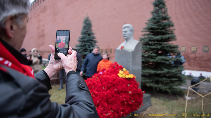 Акция «Две гвоздики для товарища Сталина» стала традицией — мы пойдем возлагать цветы в тридцать первый раз с момента возникновения в декабре 2010 года. За время проведения всех этапов акции в общей сложности было собрано и возложено почти 180 000 алых гвоздик, приобретенных на средства участников акции. Фотоотчеты обо всех этапах акции можно найти на информационной странице акции - сайте Сталинизатор ( http://stalinizator.ru/ ).