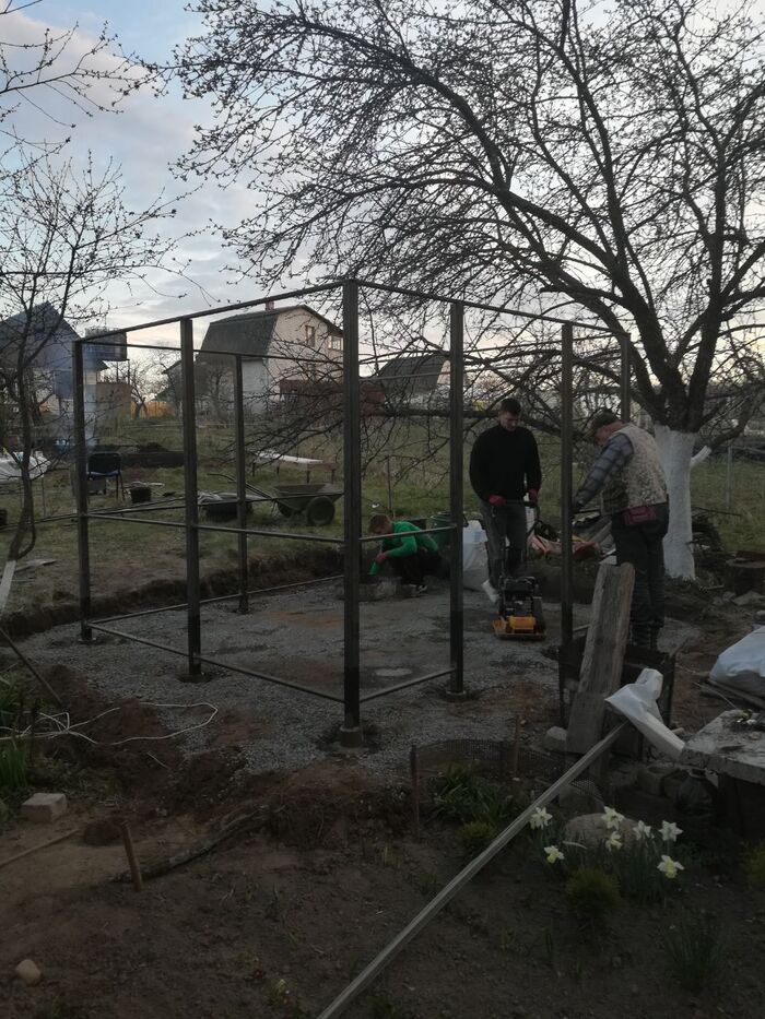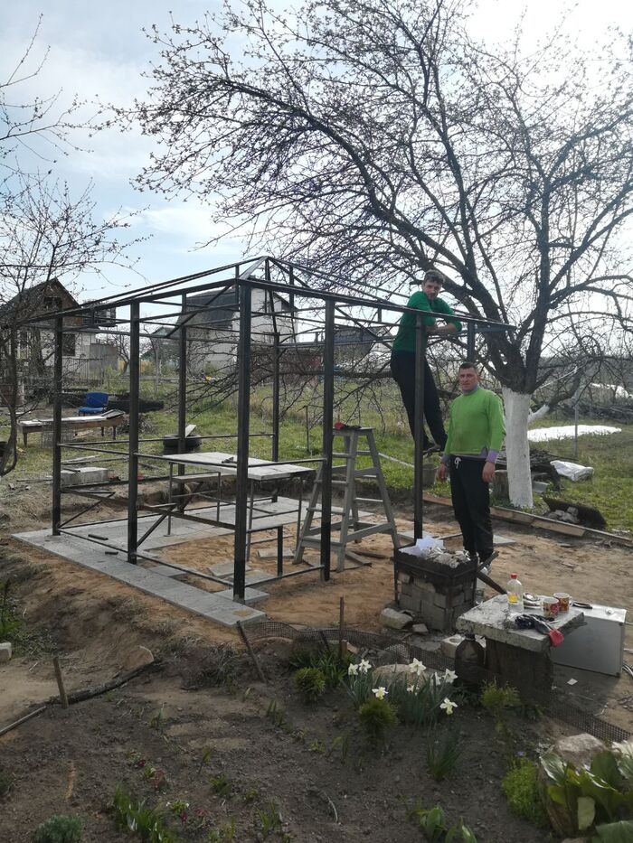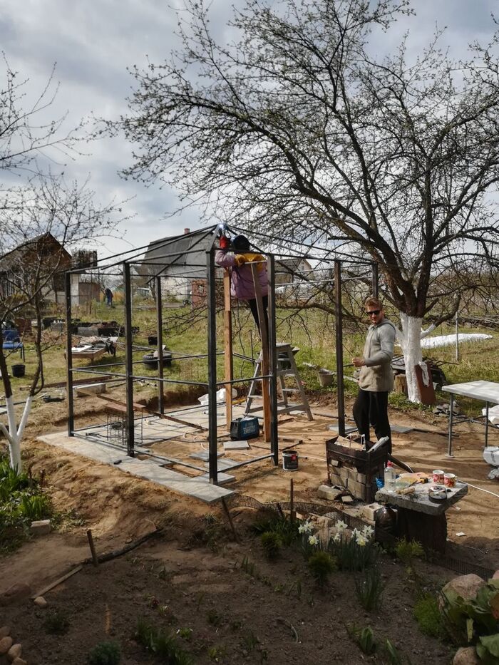 Обкопали неровный участок земли, столбы забетонированы в трубы асбестовые. Чуть прихватили сваркой (т.к. друг сварщик приезжал на следующий день)