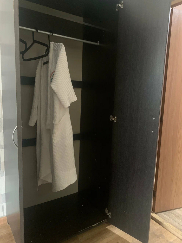 2 далее удобную спальную мебель и белье - из Икеи, стали менять на постарее, подушки в карточных шариках, кровати менее удобные, скрипят, тумбочки пообшарпались местами, у нас такие на свалках бывают выкидывают