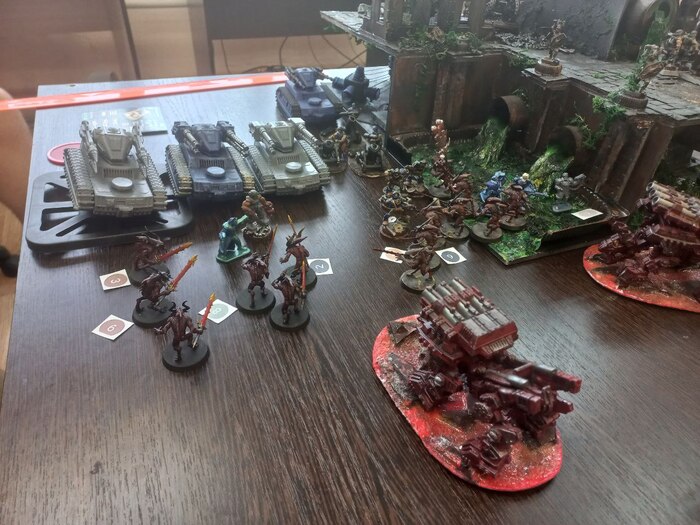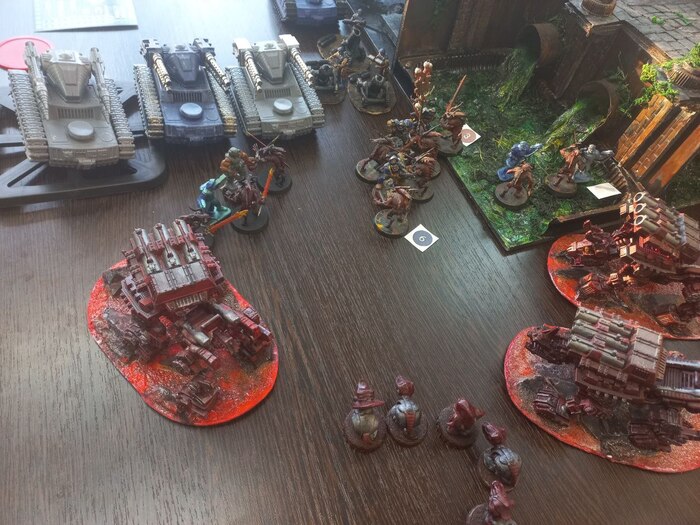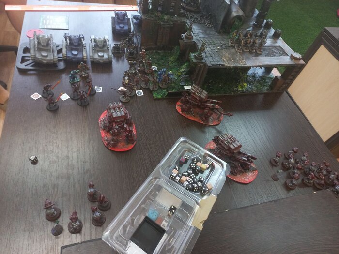 На тот момент я только разрабатывал альтернативные правила домашней вахи, а потому были перегибы с балансом. Альтернативные потому что в ваху хочется играть, но позволить такие дорогие фигурки я не мог, благо есть фигурки по бронепехоте. В каком то смысле домашняя настолка стала салатом из правил бронепехоты, робогира и вахи, но ГЛАВНОЙ цели я добился - ребятам было весело играть и понемногу проникаться вахой, а потому я продолжаю развивать данную тему и по сей день)