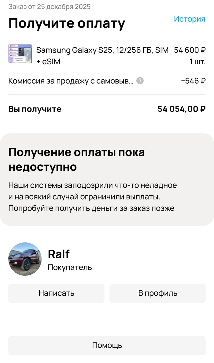 Авито и самовывоз: заблокировали выплату, после того, как я отдал телефон покупателю. У Авито есть такая функция: самовывоз, при котором покупатель оплачивает на сайте товар, потом забирает его лично. Я согласился на такую продажу, покупатель приехал и забрал телефон, продиктовал 4х значный код, я его ввёл. И отдал телефон ему в руки. Потом Авито просто заблокировало мне всю сумму, и я остался без денег и телефона, что теперь делать, не знаю.Теперь научен и так больше продавать не буду. Пишу тут, чтобы все это знали, и тоже не пользовались такой функцией.