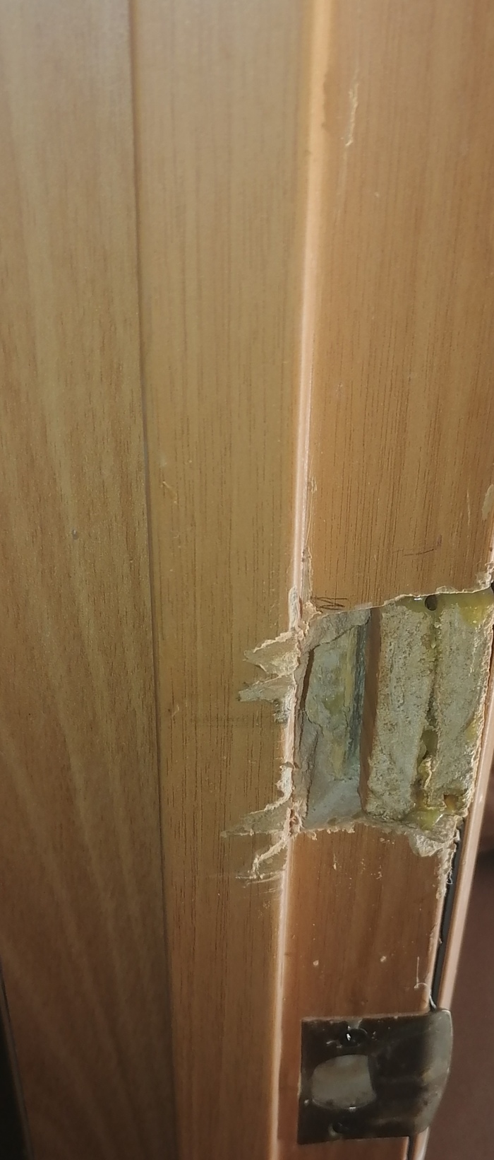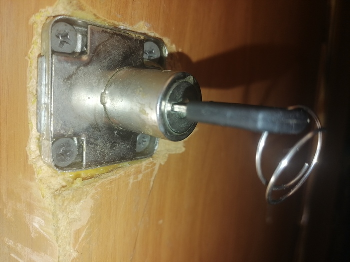 Сначала я купил клей"Момент"столяр экспресс(я искал быстросохнущий клей для работы с деревом,но продавщица в магазины дала совет использовать этот клей так как он универсален и как итог клеем отлично),который обошёлся мне в 300 рублей и потом уже купил мебельный замок,который обошёлся мне в 260 рублей.Я начал работать ночью по выходным,пока всё спали,сначала отмерил место для замка и застелил газетами,чтобы не пачкать пол,потом вырезал место для замочной скважены,чтобы хорошо закрывать дверь,но когда я уже вкручивал шурупы в замок инкогнито уже было быть невозможно,мне пришлось днём поработать дрелью,а потом приклеить замок и доску для замочной скважены клеем.