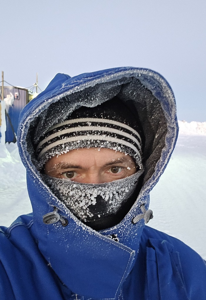 Вторая проблема из-за чего ничего не видно, это замерзают и слипаются ресницы, и вообще холодно. Как тут работали первооткрыватели этих мест, не понятно. У них не было ни современной одежды, ни чайника в вагончике.