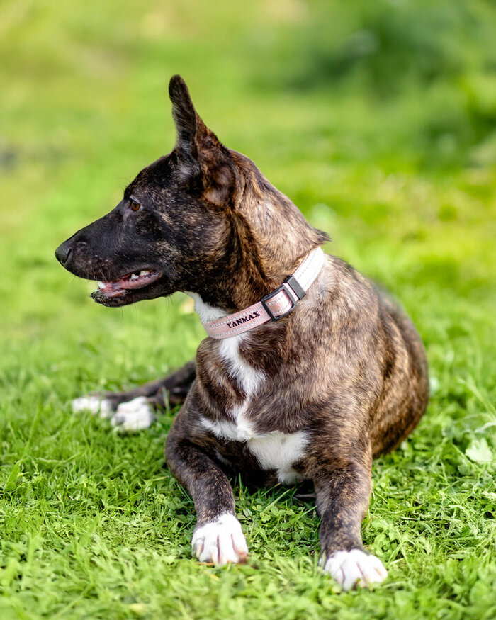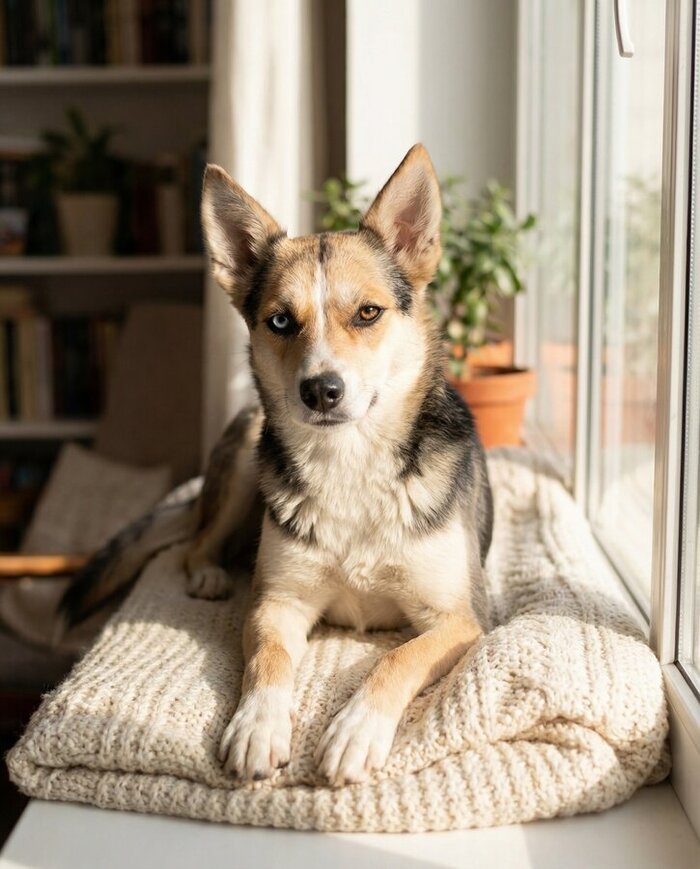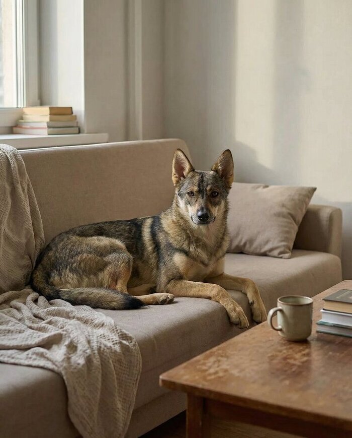 У неё устойчивая психика и живой, тёплый характер. Она не шумная, не гиперактивная, но и не «диванная мебель». В ней есть глубина и мягкость. Та самая собака, после которой в доме становится спокойно.