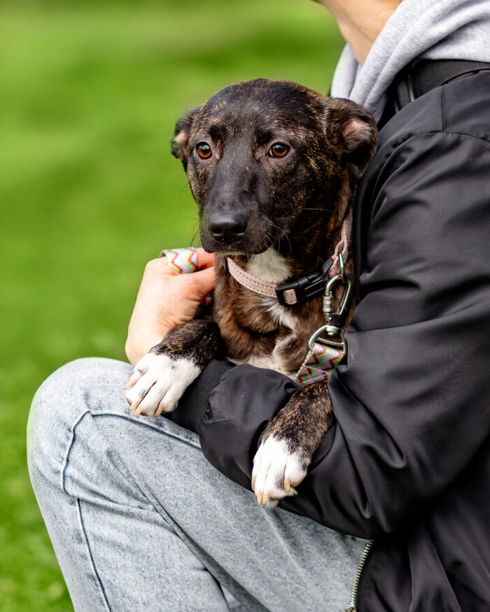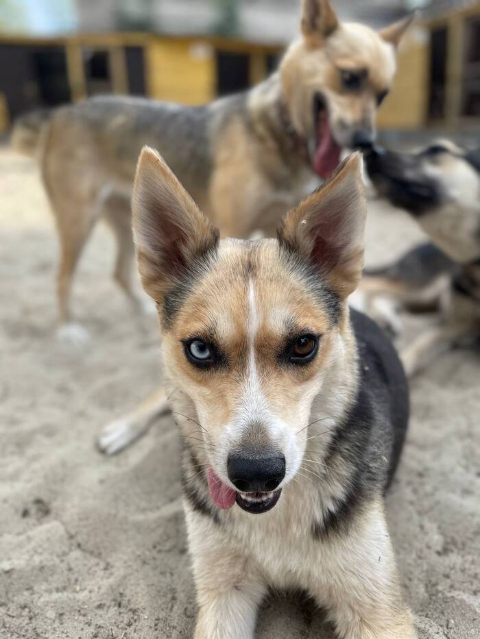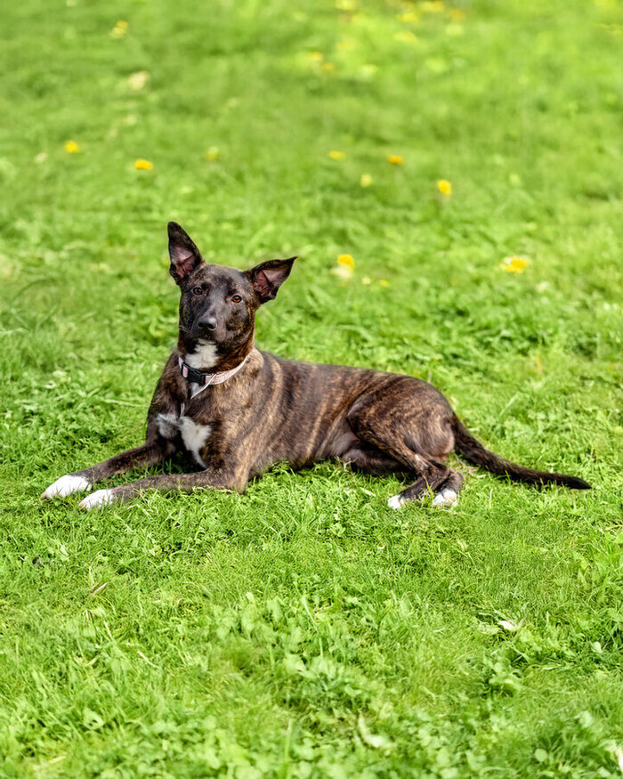Ноченька очень мягкая, ориентированная на человека и по-настоящему домашняя. Она не просто любит людей — она выбирает быть рядом. Садится ближе, кладет морду на колени, тихо обнимается. Не требует, а присутствует, но если вы дадите ей понять, что готовы играть - этот ураган эмоций обязательно поддержит Вас!.