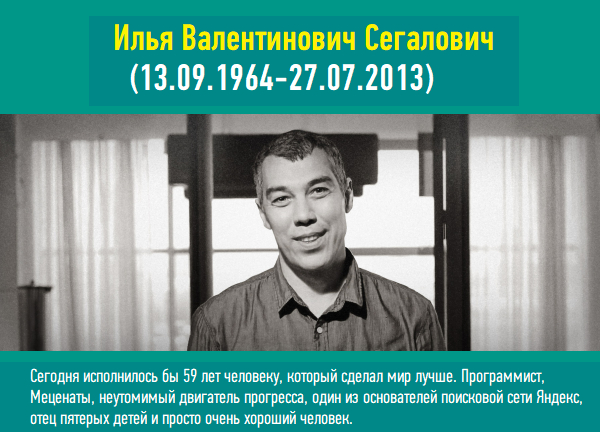 Как известно, Илья Сегалович в сентябре 2012 года лечился от рака желудка. Её отец Валентин Ильич неоднократно сообщал прессе, что недуг взял верх 23-24 числа и Илье назначили новое лечение 25 июля 2013 года, которое практически гарантирует выздоровление мужчины. По итогу мужчина 2 дня был подключенным к аппарату искусственного жизнеобеспечения, а затем скончался. Смерть Ильи Сегаловича была насколько быстрой и неожиданной, что фанаты программиста считают, что он мог просто инсценировать похороны и сбежать в другую страну, чтобы зажить спокойной и тихой жизнью.
