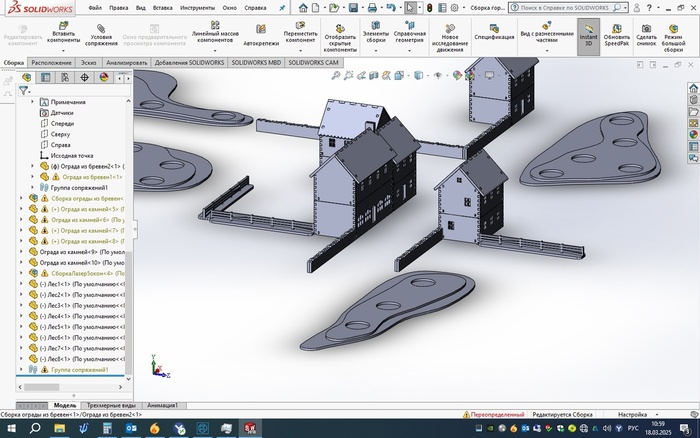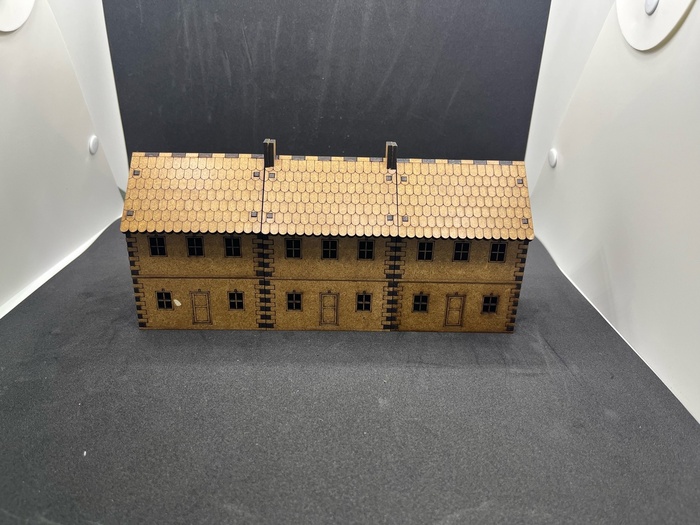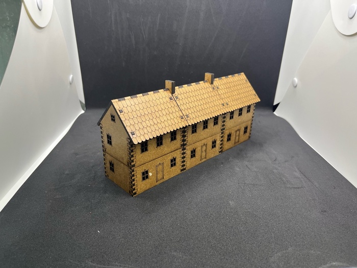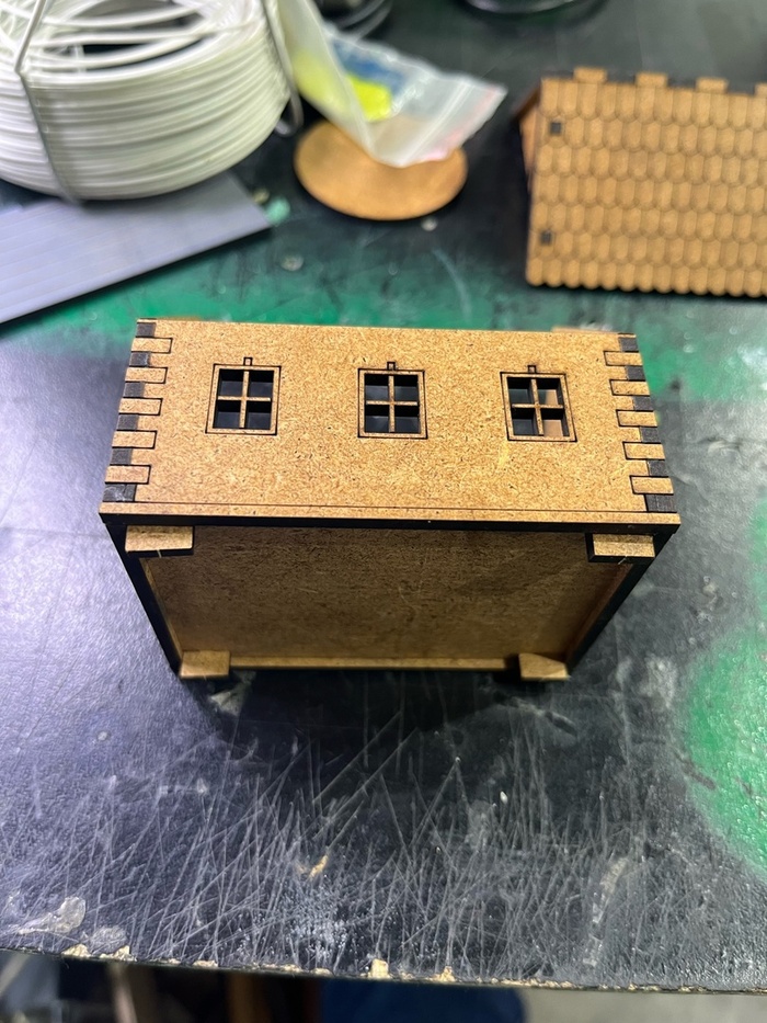 По роду деятельности я занимаюсь проектированием всяких железяк на производство и время от времени обращаемся к лазерной резке. Тут как раз и товарищ предложил обратиться к профильным группам - вдруг кто нарежет мои чертежи не дорого. Сказано - сделано, отрисовал, обратился и (Божечки-кошечки!) мне дали добро. Удалось договориться на тех условиях, что мне помогают и дают скидку, а за хозяином паблика по нарезке террейна из ХДФ остается право продавать мой террейн другим людям. Стоит отдать должное - он не только взялся помочь, но и активно консультировал меня с точки зрения грамотного проектирования террейна, чтобы швы стыков потом не мозолили глаз, научил меня делать гравировку и т.д., огромное спасибо ему за это. Если будет интересно - пишите в комментарии, отвечу какие программы, какие приемы, как что создавалось. А пока похвалюсь предварительным результатом - домики прошли стадию пробной резки и ожидают отправки ко мне почтой