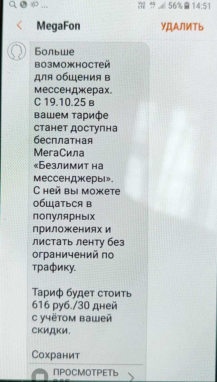 Проверяю время от времени телефоны родителей на всякие подписки и изменения тарифов, родители взрослые не совсем разбираются. Тут вот такое смс