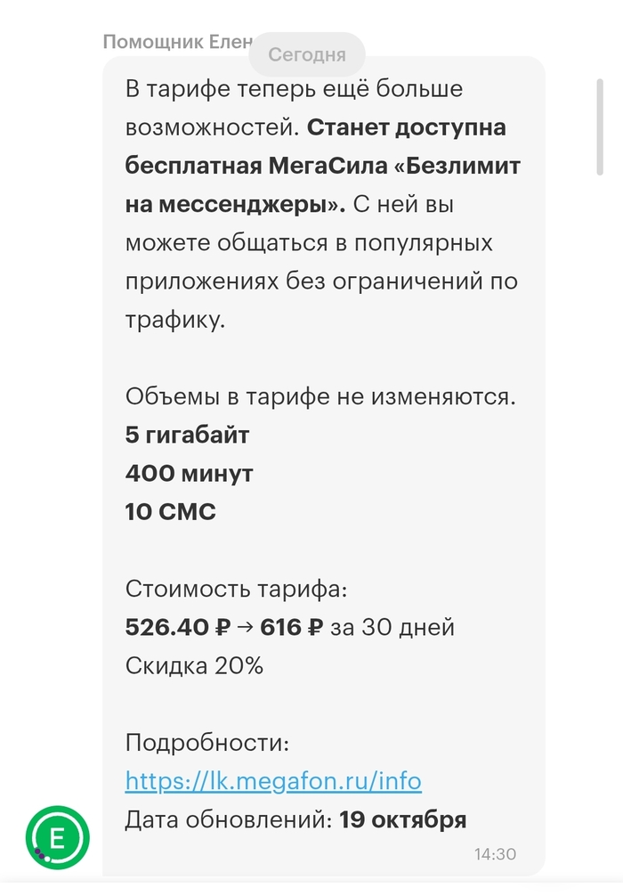 Они добавили МегаСилу, но при этом тариф не как не улучшили. Я тут же в чате пишу: