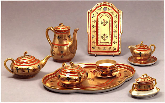 П.В Леонов (автор эскиза росписи), Сервиз «Москвичка» (синий вариант) Форма "С-1" Е. Штрикер. 1934 г. Фарфор: наделазурное крытье с прочисткой, золочение, цировка