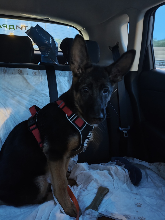 И с этого момента начался наш сложный путь. Собака привыкала к нам, мы привыкали к собаке(да, это совсем не так просто). Щенок прекрасный, но сложный. Рабочая собака, как нам потом уже сказал кинолог. Она очень характерная, упрямая, сильная. И психика бетонная. Мы учимся вместе с ней.