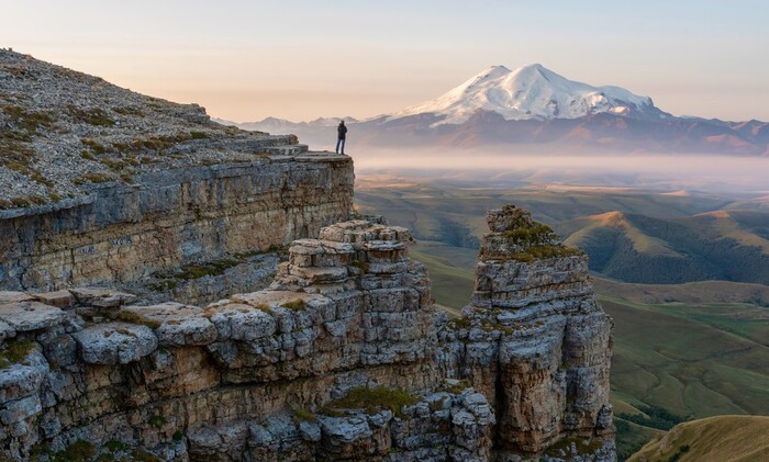 Что касается плато, с них на двухголового гиганта открывается панорамный обзор сверху — высочайшую вершину Европы вам будто подают «на блюдечке».
