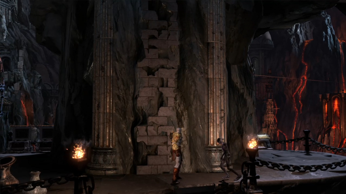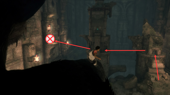 В игре есть интересный пазл, который демонстрирует продуманный дизайн продвижения игрока вглубь уровня и решения придуманной задачи. Игрок начинает движение в направлении стрелки, и перед ним внезапно поднимается пол, блокируя путь. Это заставляет его начать искать обходной маршрут. Правильный путь обозначается монетами, которые ведут игрока в нужном направлении.
