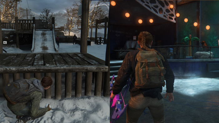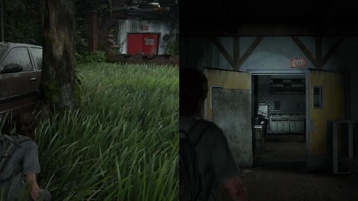 Немного про работу с альтернативными и основными путями перемещения игрока. В игре есть интересное место, где перед игроком намеренно создаётся альтернативный путь, который сразу привлекает внимание. Чтобы побудить игрока исследовать его, на пути размещают монетку, создавая дополнительный стимул. Однако этот альтернативный маршрут ведёт к секретному уровню и быстро возвращает игрока к главному входу, не отвлекая его надолго. При этом специально «откидывает» игрока как можно ближе к основному пути, чтобы он не терял фокус на основном пути, но при этом ощутил награду за своё любопытство. Главной задачей разработчика было продемонстрировать наличие секретных уровней в игре, что удалось сделать интересно. Такой дизайн помогает поддерживать плавный ритм игры, поощряя исследование, но не сбивая темп и заставляя игрока узнать больше об объектах исследования.