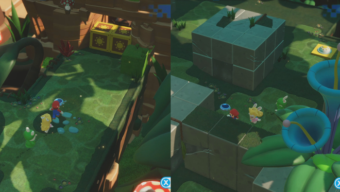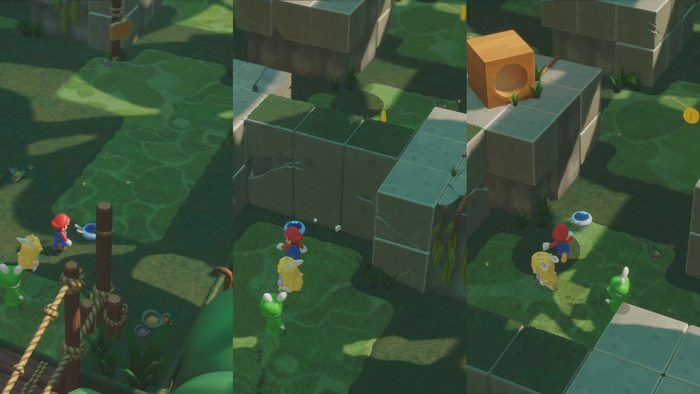 Разработчики Mario + Rabbids: Kingdom Battle сделали очень интересные локации, с точки зрения дизайна миссий и пазлов. Каждый уровень и головоломка продуманы так, чтобы предоставлять игрокам интересные и разнообразные задачи. Особенно понравился дизайн пазлов, которых здесь достаточно большое количество в игре на основе маленького количества механик для их создания.