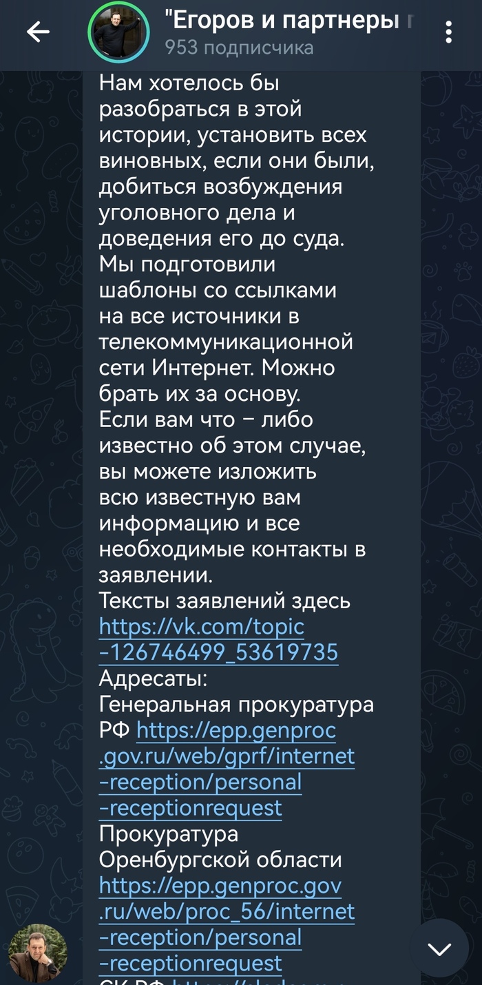 👮♀️При подаче заявления в полицию Марине отказали в возбуждении дела. Несмотря на то, что она обратилась в больницу, ей выписали больничный, она прошла освидетельствование в СМЭ и ее повреждения рассматривают как последствия травмы. Марина обратилась в прокуратуру для решения вопроса о нападении. Дело на рассмотрении.