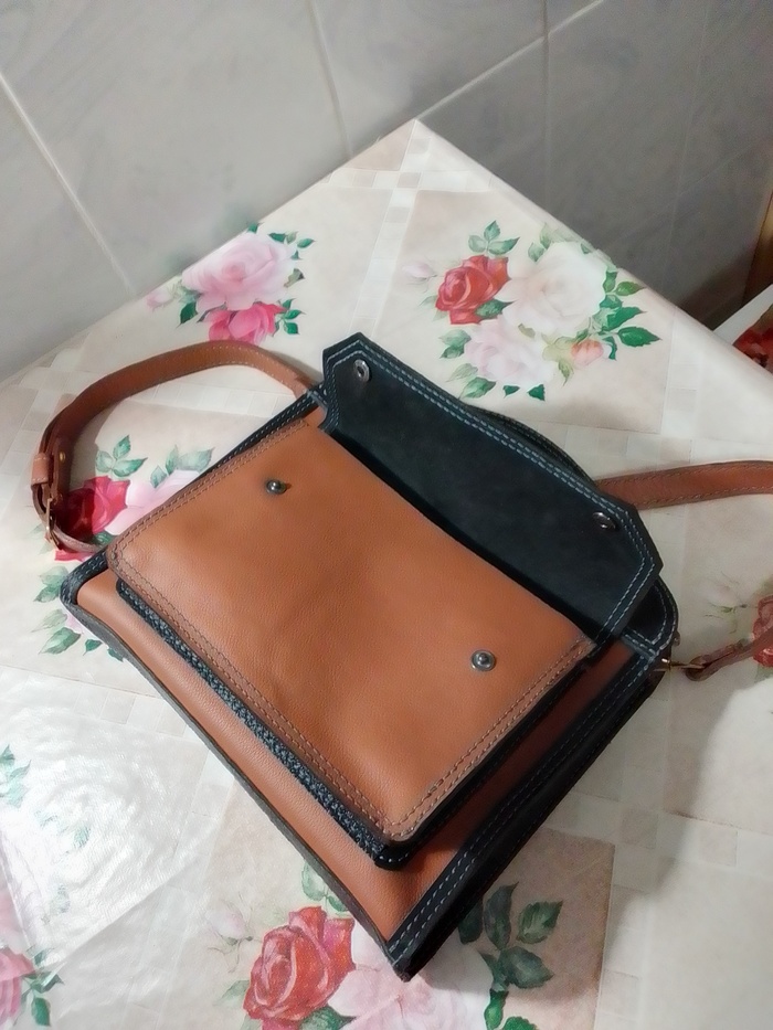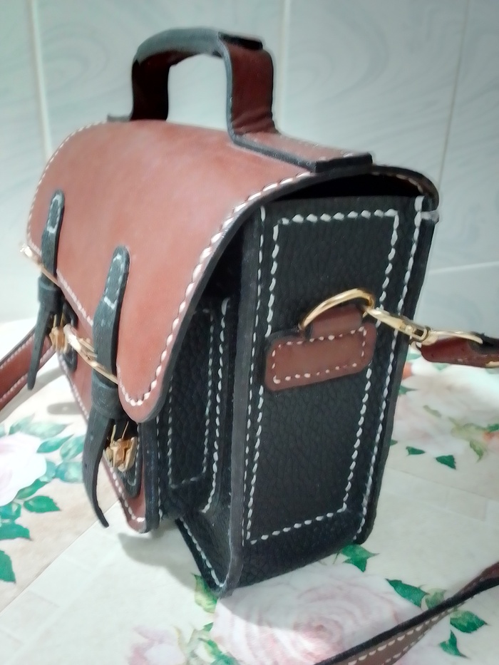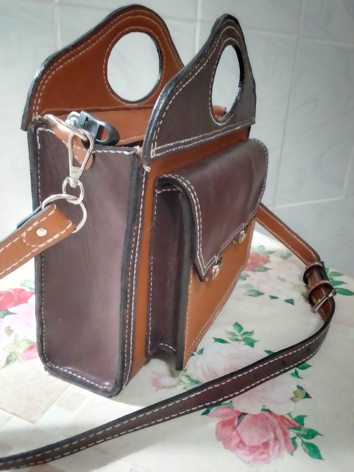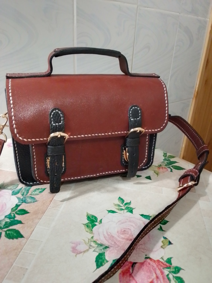 Добрый день. Прошлый раз я показывал маленькую женскую сумку, ее забрала младшая дочка, сразу старшая захотела такуюже. Сшил, ей понравилась, но заодно прихватила и новую сумку жены, на вопрос как носить две, загадочно улыбнулась и ничего не ответила.