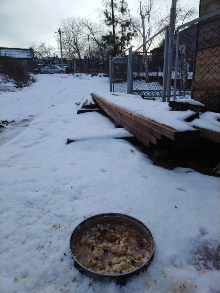 Миска с едой на улице в Волгограде