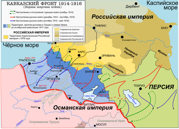 При Николае Николаевиче русские войска заняли большую часть Турецкой Армении 116,5 тыс. кв. км., продвинувшись вглубь Османской империи более чем на 250 км, захватив города — Эрзерум, Ван, Трапезунд, Эрзинджан, Муш и Битлис. Кавказский фронт разгромил 3-ю турецкую армию и смогла оттеснить 2-ю.После этого в марте 1917 г. вновь стал Верховным до 11 марта 1917 года в связи с несогласием Временного правительства видеть его во главе русской армии.31 марта 1917 года уволился с рядов армии.Умер в эмиграции во Франции 5 января 1929 года.