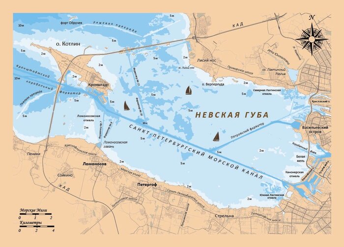 Самое мелкое место Невской губы, вместе с Невским баром, тянется от устья Невы до острова Котлин, где в XVIII веке была заложена и начала активно развиваться Кронштадтская верфь и был основан Кронштадтский порт. Через него проходил весь грузооборот России по северо-восточному направлению, а также пролегали судоходные пути, по которым ходили гражданские и военные суда.