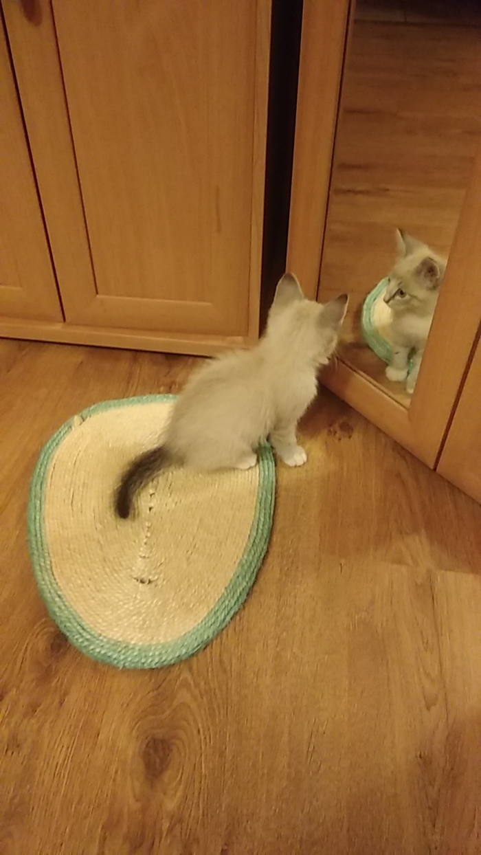 Это наш кот Янис. Взяли его трехмесячным в приюте, увидели в соцсетях, и съездили в Звенигород . До нас его с сестренкой нашли в котловане стройки, и отнесли в монастырь, а из него он попал в приют. Cейчас идёт вторая неделя, как он с нами. Сильно вырос, и прибавил в весе почти 300 грамм, очень умный и ласковый, но не без тыгыдыков. Сразу понял, где лоток, и вообще освоился буквально за день. Продолжает исследовать территорию :)