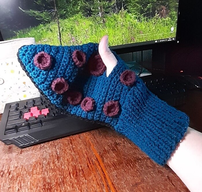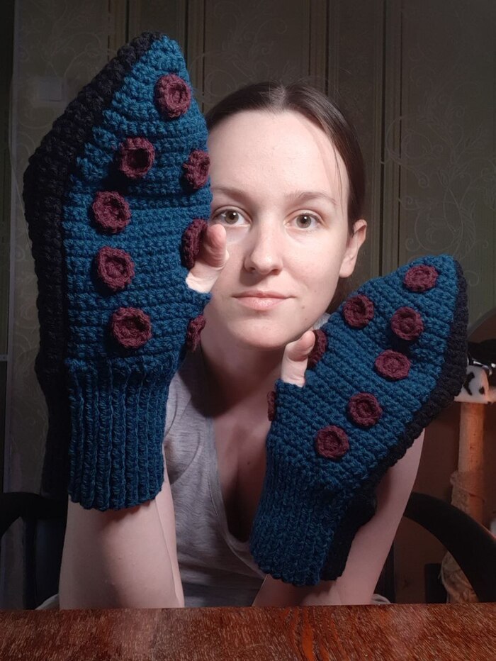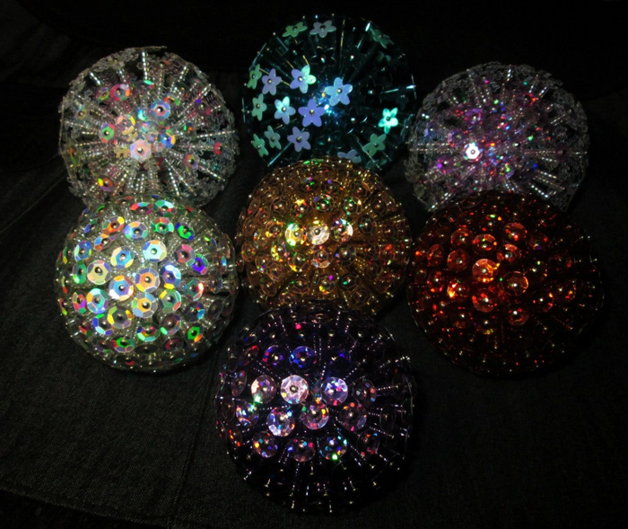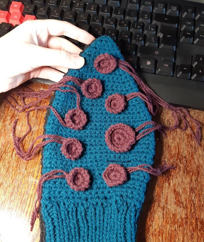 Плела в 2012 году. Их почти сразу купили на какой-то из ярмарок, нормальной парной фотки так и не сделала, только вот это, на коленке. Отголоски готично-неформальной юности)