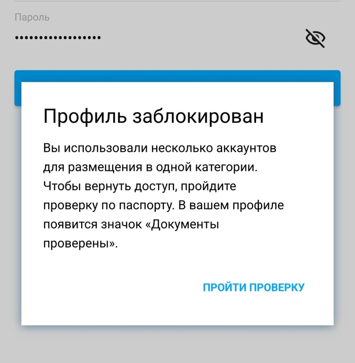 объявление было на проверке, после чего вылетает Акаунт и просит пройти проверку по паспорту. До этого этот акаунт мне уже блокировали с этой же причиной, в чём дело?