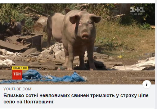 На Полтавщине около сотни неуловимых свиней сбежали из помещения, где их содержали. Уже месяц они бегают на свободе и по ночам выедают все с огородов. Селяне бессильны, ибо ловить или отстреливать чужих свиней запрещено законом.